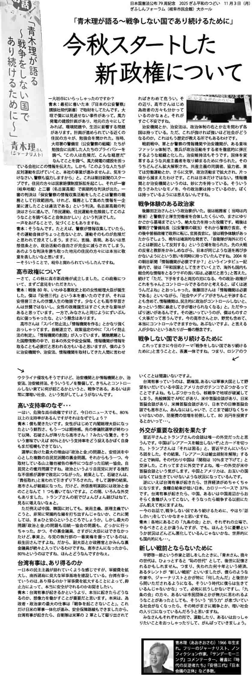 平和のつどい・青木理氏